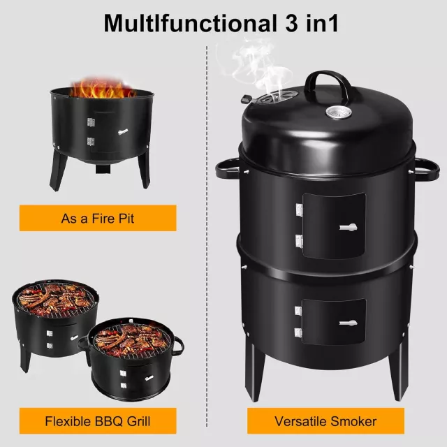 Upgrade your outdoor cooking experience today with the 3-in-1 Charcoal BBQ Smoker Grill with Chimney and Thermometer. Light it up, gather your friends, and savor the smoky aroma of pure barbecue bliss. Turn every outdoor moment into a delicious memory—order yours now!