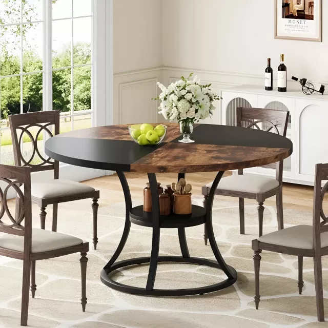 Crafted from premium MDF, the sturdy tabletop features a warm walnut finish that effortlessly blends rustic elegance with modern style. This dining table not only looks great, but it is built to last. The unique trapezoid-shaped metal legs give it stability and style, ensuring a strong foundation that can hold up to 400 lbs. You can trust this table to endure countless meals and memories with family and friends.
