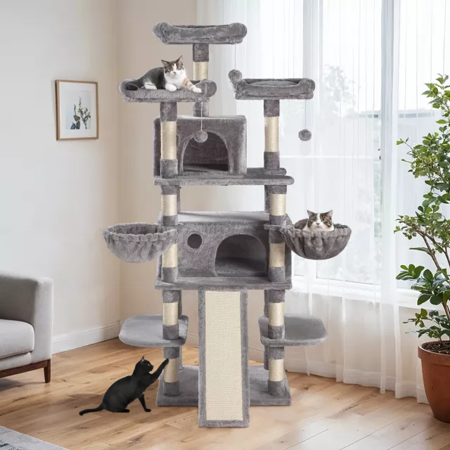 Give your cats the ultimate playground with this 81-inch tall multi-level cat tree tower — a perfect blend of comfort, fun, and stability. Designed for large cats and multi-cat households, this tall structure offers endless entertainment and cozy resting spaces. From scaling tall posts to curling up in plush condos, your feline companions will have everything they need to stay happy, healthy, and active.