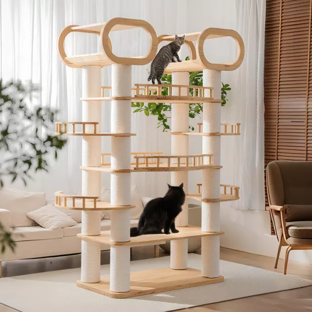 Crafted with a thickened, enlarged base for maximum stability, this tall cat tree won’t wobble or tip, even during the most playful moments. Every level is covered with ultra-soft plush fabric, giving your cats the royal comfort they deserve. The extra-large column-style condos offer cozy retreats for multiple cats to nap together, making it ideal for multi-cat households.