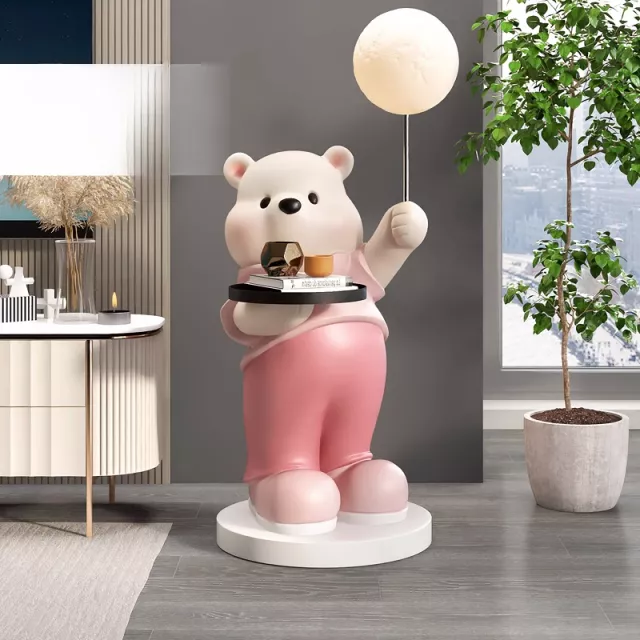 Transform your home into a cozy, creative sanctuary with this Adorable Bear Resin Sculpture. Designed for modern interiors, this large floor-to-ceiling figurine adds an artistic and playful touch to your living room, hallway, or lounge. Its delightful bear shape, finished in soft hues of pink and yellow, creates a welcoming and joyful atmosphere that guests will love.