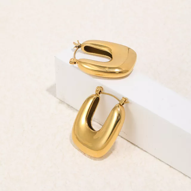 Enhance your accessory game with these stunning U-shaped stainless steel earrings. Perfect for adding a touch of elegance to any outfit, these gold-plated hoops are designed for the modern woman who appreciates both style and durability. Whether you’re dressing up for a night out or adding a subtle touch of sophistication to your everyday look, these earrings are the perfect choice. Their classic design and high-quality materials make them a versatile addition to any jewelry collection.