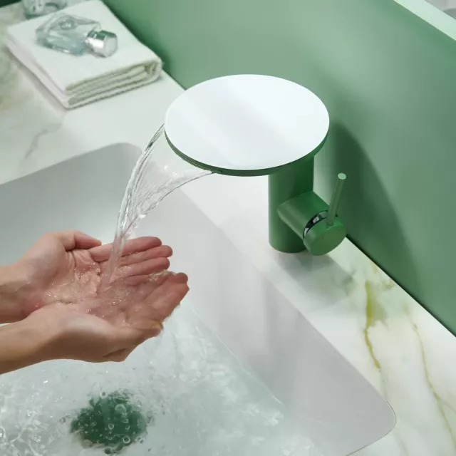 Transform your bathroom into a modern oasis with the Colorful Waterfall Basin Faucet. Designed for both hot and cold water use, this single-lever brass faucet combines functionality with stunning visual appeal. The eye-catching mix of green and white, paired with a smooth waterfall spout, delivers a refreshing flow that feels as luxurious as it looks. Perfect for contemporary spaces, this faucet adds a unique touch that makes your sink area truly stand out.