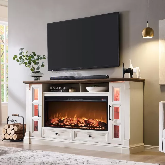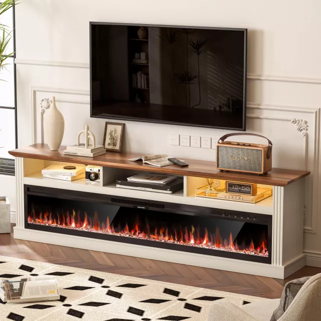 Bring warmth, style, and functionality to your living room with this beautifully crafted Farmhouse Fireplace TV Stand. Designed to hold TVs up to 80 inches, this 70-inch entertainment center perfectly blends vintage farmhouse appeal with contemporary convenience. Its distressed woodgrain finish and clean lines create a timeless look that instantly elevates any home décor. The centerpiece—a 42-inch electric fireplace—adds a soothing glow and cozy ambiance, making every movie night or gathering even more inviting.