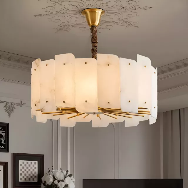 Bring timeless beauty and refined craftsmanship into your home with the Luxury Alabaster Marble Pendant Light. Designed for those who appreciate understated opulence, this chandelier combines genuine alabaster stone with polished copper to create a warm, sophisticated glow. Each piece of alabaster is one-of-a-kind, with natural veining patterns that make every lamp a unique work of art.