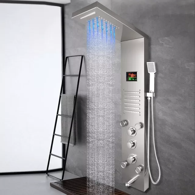 Luxury LED Digital Shower Panel with Massage Jets & Temperature Display