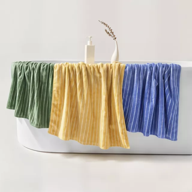 This towel set is designed for everyday use in the bathroom, after showers, baths, or even at the pool. Their superior absorption capacity ensures you dry off quickly and comfortably, while the soft, terry fabric feels gentle against your skin. The lightweight yet plush texture makes them easy to handle and store, and the striped pattern adds a playful, modern touch that fits perfectly with any bathroom theme.