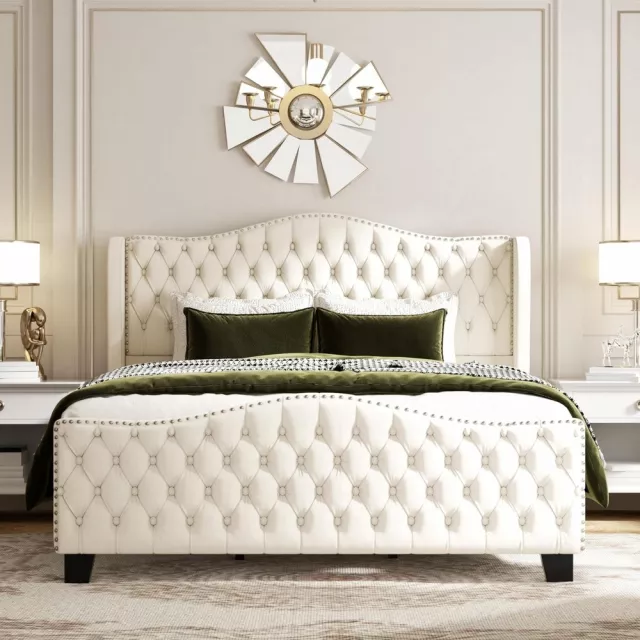 Transform your bedroom into a space of elegance and comfort with this stunning Queen Size Velvet Platform Bed Frame. Designed with a 60-inch tall wingback headboard and a coordinating footboard, this bed is a statement piece that blends luxury, durability, and modern functionality. Wrapped in soft, plush green velvet, it brings a touch of sophistication and warmth to your room, making it perfect for those who value both style and comfort.