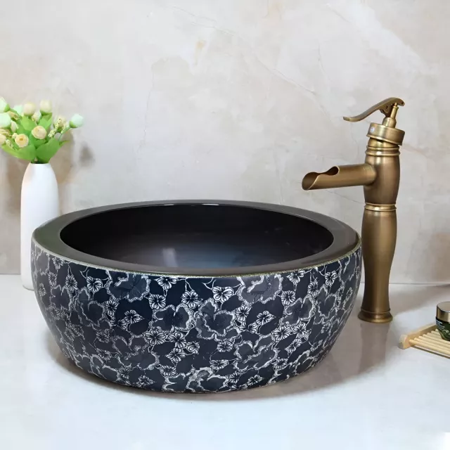 Made from high-quality ceramic using advanced high-temperature firing, the basin features a triple-layer glazed surface that resists scratches, fading, and water absorption. Its solid brass faucet boasts an antique finish and waterfall spout for a smooth, steady flow of water, blending old-world charm with modern performance. The non-porous surface makes cleaning effortless—just wipe with a damp cloth to keep it gleaming like new.
